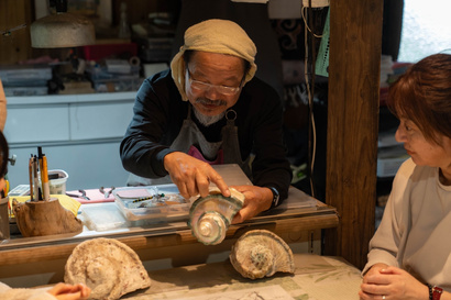 「煌めかせる」をテーマにしたツアー最終日に夜光貝を磨きながら「煌めかせる」の本質を見つめます